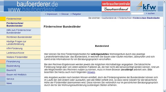Folgen sie dem Link und sie gelangen sie auf die Seiten von Baufoerderer.de und informieren sie sich über Fördermöglichkeiten für ihr Wohneigentum.